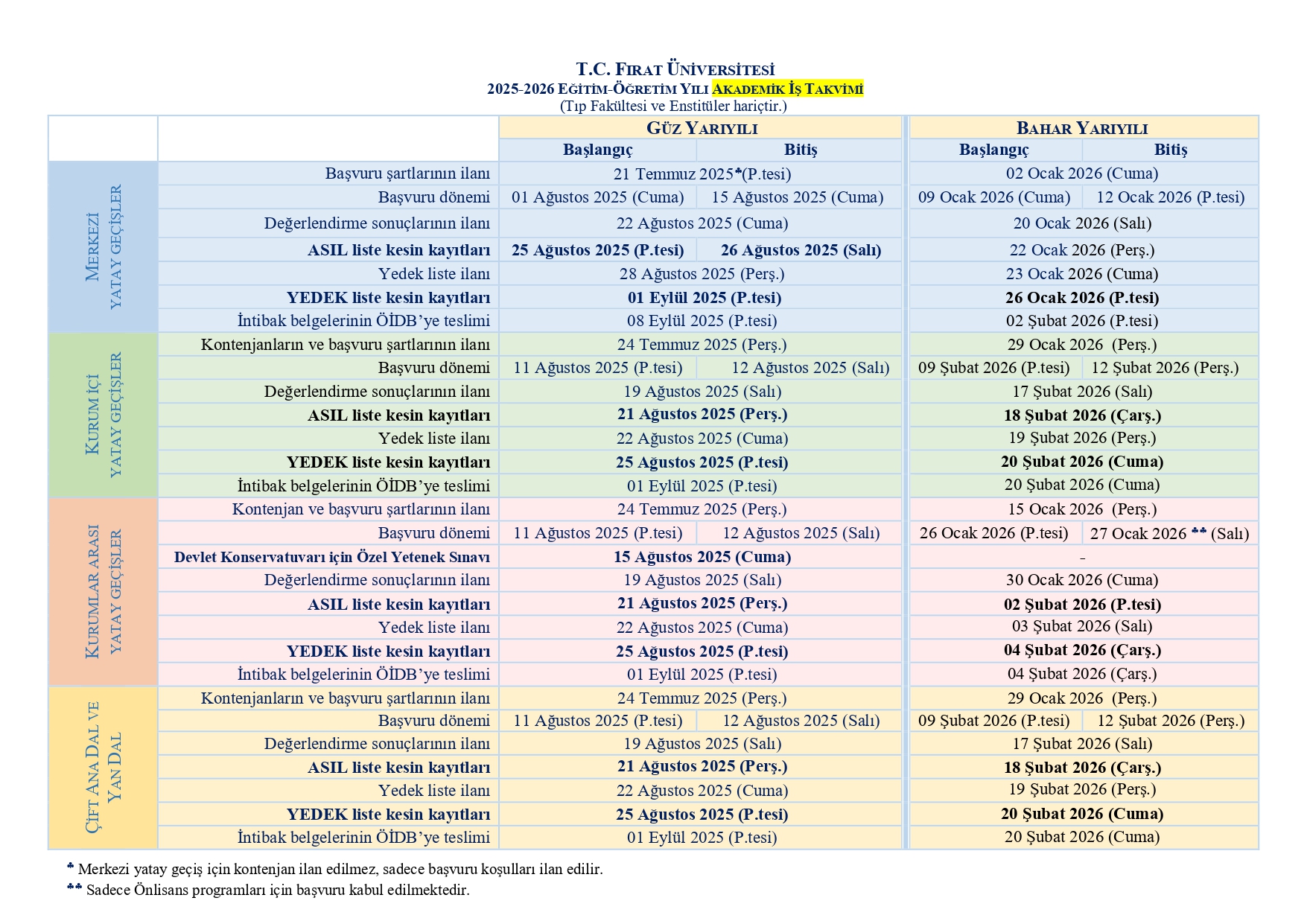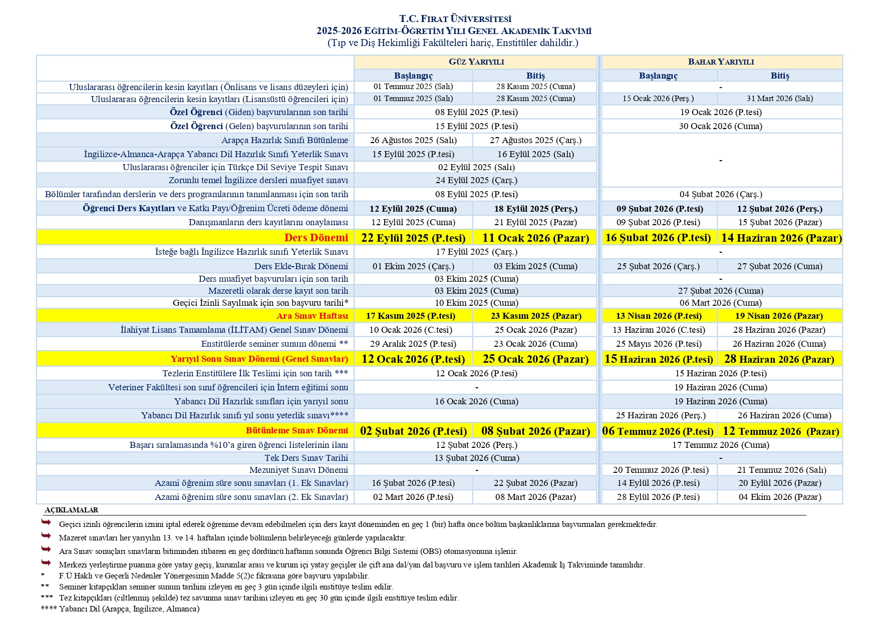 2025-2026 Genel Akademik Takvim